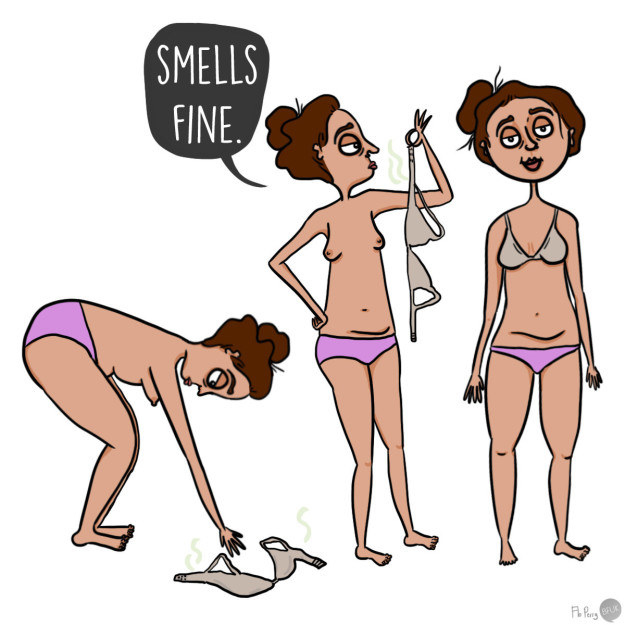 6. Cheirar calcinhas quando você não consegue lembrar se estão limpas ou não.